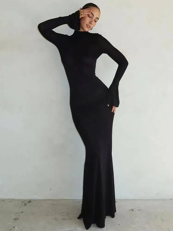 Solid rygglös Maxiklänning - Aftonkläder med trumpetärm