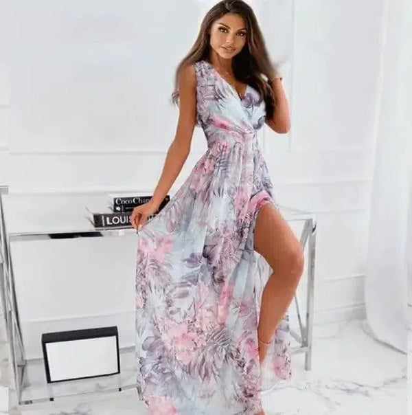 Sommar Chiffongtryck Snörningsklänning Ärmlös Dam