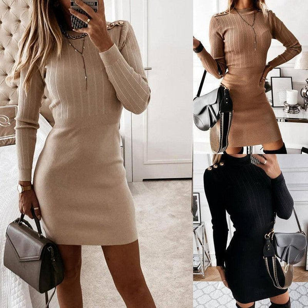 Stickad kort kjol med höfter Långärmad stickad tröja för kvinnor