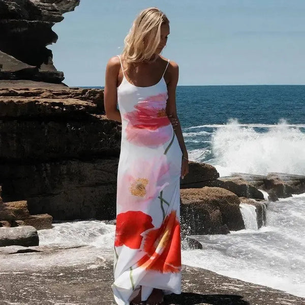 Tryckt Halter Maxi Dress - Summer Beach Party Wear