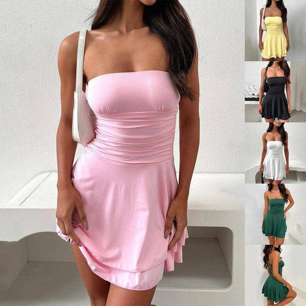 Y2K Tube-top kort klänning Sommar veckade tighta klänningar